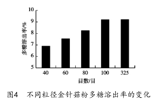 4. 金針菇不同粒徑粉體多糖的溶出率