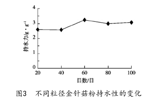 3. 金針菇不同粒徑粉體的持水性