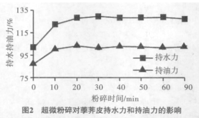 2. 超微粉碎對荸薺皮持水力、持油力的影響