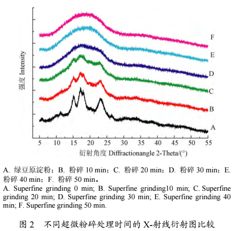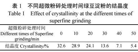 2. 超微粉碎處理時間對綠豆淀粉結晶度的影響