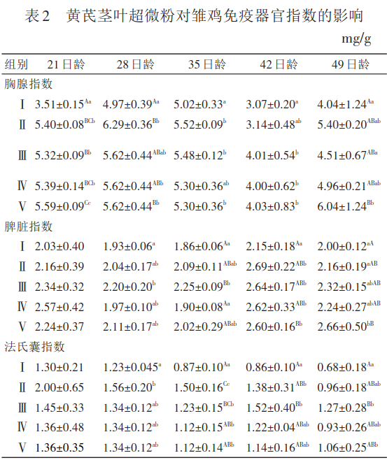 2. 黃芪莖葉超微粉對(duì)雛雞免疫器官指數(shù)的影響