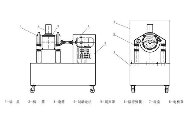 該設(shè)備采用振動(dòng)粉碎的工作原理,在磨筒(粉碎室)中裝填一定量的研磨介質(zhì),如硬質(zhì)材料材料的球、棒或柱,磨筒在外加激振力的作用下產(chǎn)生順逆時(shí)針方向的圓振動(dòng)。磨筒的強(qiáng)烈振動(dòng)使磨筒內(nèi)的介質(zhì)產(chǎn)生拋擲運(yùn)動(dòng),在此拋擲運(yùn)動(dòng)的作用下,使每個(gè)介質(zhì)都產(chǎn)生了與圓振動(dòng)同向的旋轉(zhuǎn)運(yùn)動(dòng),與此同時(shí),介質(zhì)群也產(chǎn)生3-5周與圓振動(dòng)反向的低頻公轉(zhuǎn)運(yùn)動(dòng)。于是介質(zhì)時(shí)而散開,時(shí)而互相沖撞,對(duì)物料產(chǎn)生正向沖擊力和側(cè)向剪切力。物料在P、L作用力的撞擊、壓縮和剪切作用下被研細(xì)、破壁粉碎。